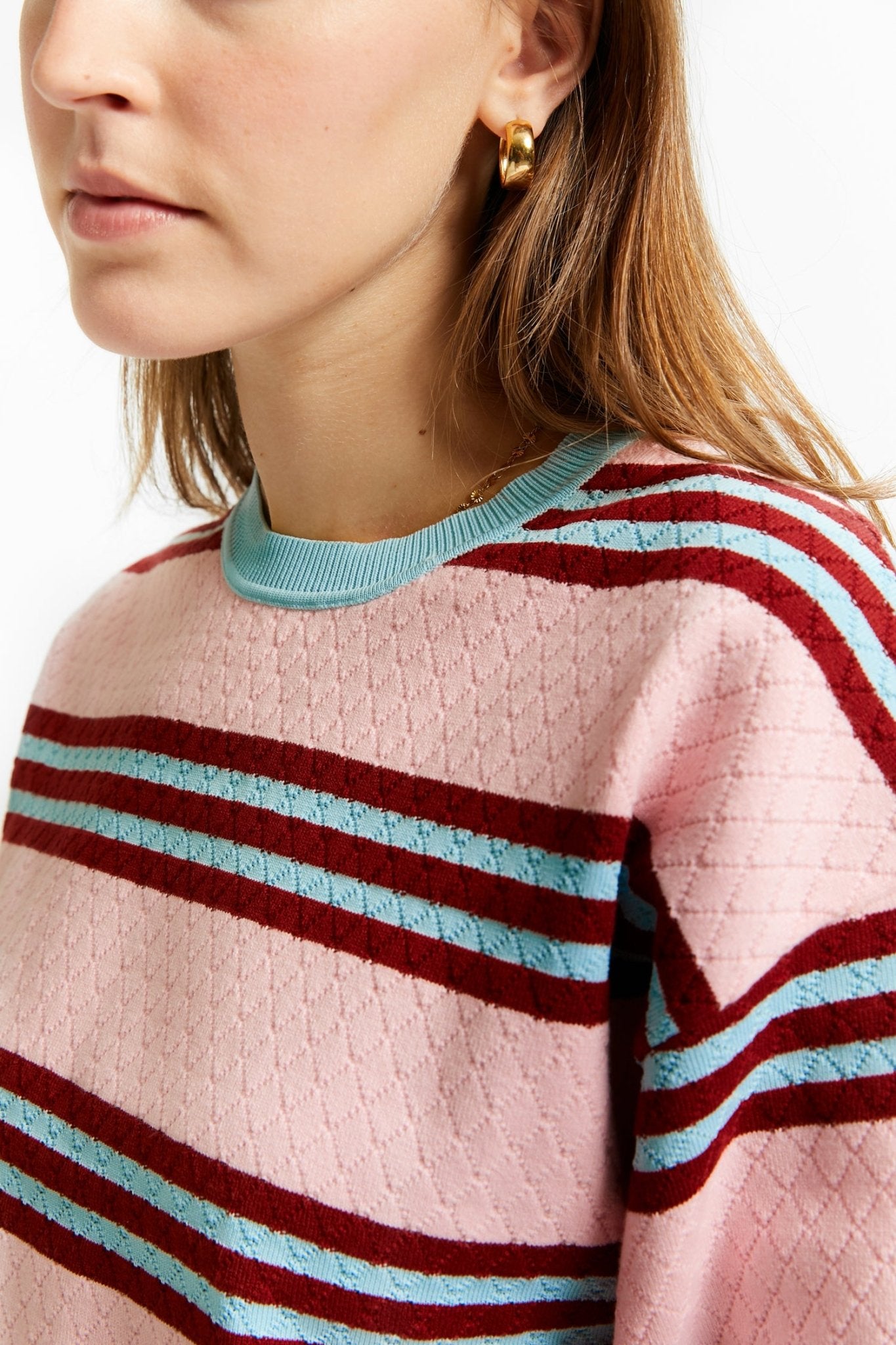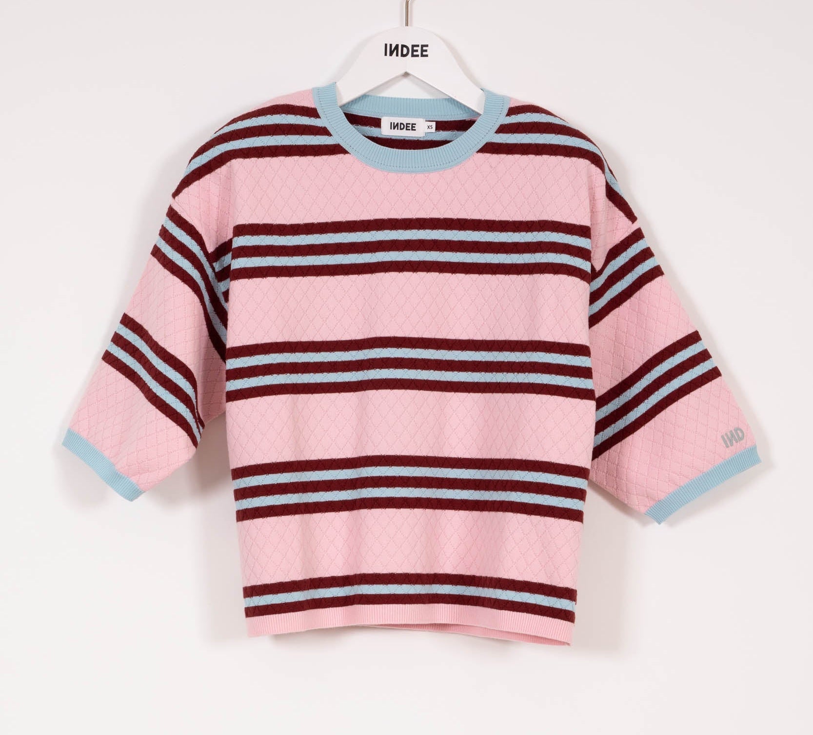 Box Pullover With Stripes Short/SL - Pink - Posh New York