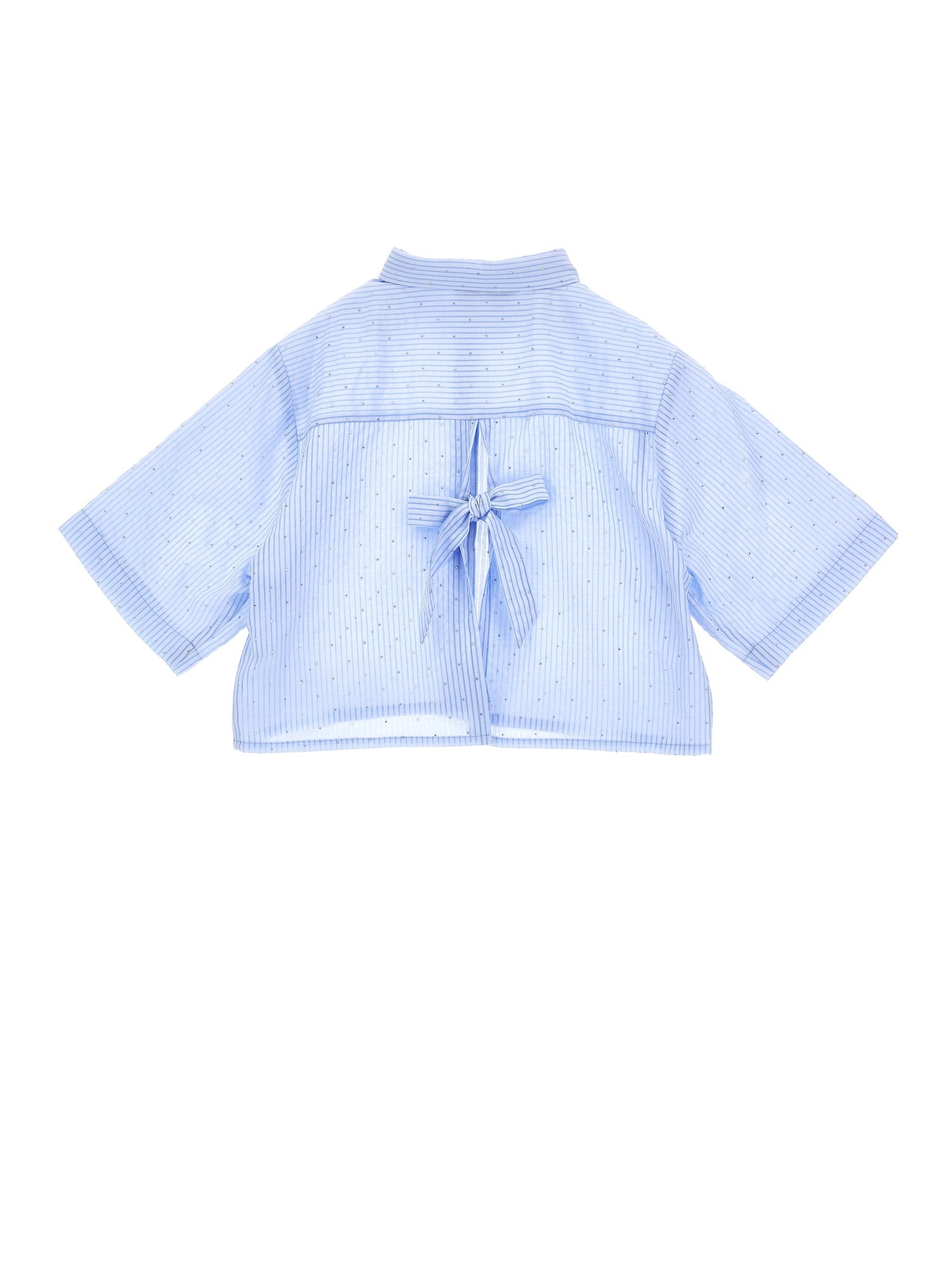 SS Boxy Button Up Shirt With Allover Stones - 0058 Blue