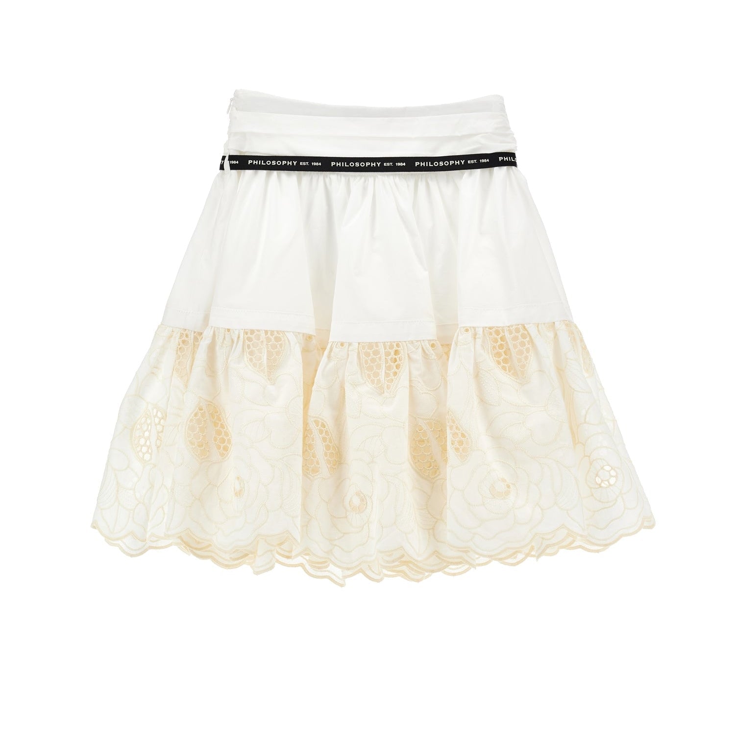 Skirt With Embroidered Detail & Logo Ribbon Tie - 0102 Off White