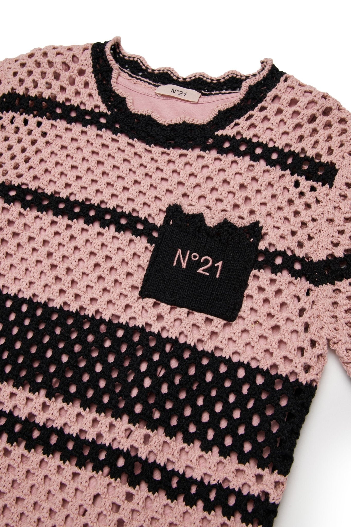 Midi Crochet Dress With Tank Lining - Pink Black
